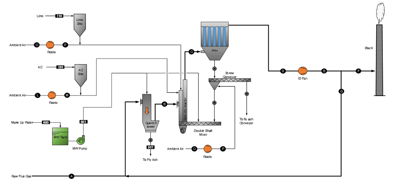 HTCD ?高效新型低碳工藝(High-Efficiency Trailblazing Carbon-reducing Design)由高效紊流轉(zhuǎn)子反應(yīng)器、飛灰循環(huán)加濕裝置和除塵器構(gòu)成。飛灰循環(huán)加濕裝置將除塵器收集未完全反應(yīng)的吸收劑重新引入反應(yīng)器提高吸收劑利用率;原煙氣在高效紊流轉(zhuǎn)子反應(yīng)器內(nèi)均布后與循環(huán)引入的高濃度吸收劑反應(yīng)并對凝并的塊狀飛灰進(jìn)行破碎,形成煙氣、高濃度吸收劑和飛灰共存的快速流化反應(yīng)床,實現(xiàn)高效的酸性污染物脫除。