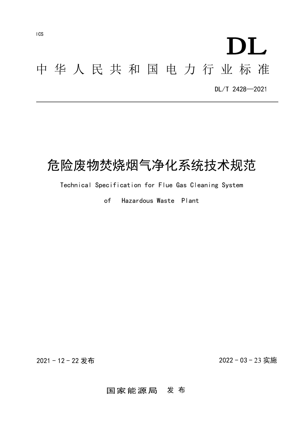 《危險廢物焚燒煙氣凈化系統(tǒng)技術(shù)規(guī)范》