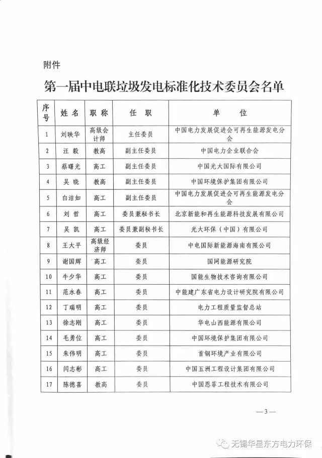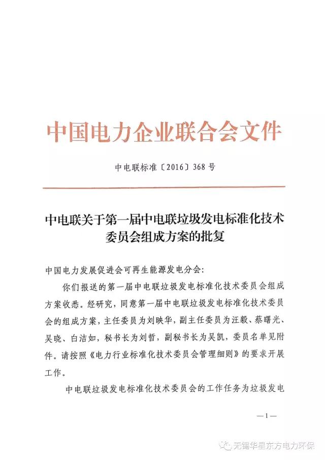 依據(jù)中國電力企業(yè)聯(lián)合會文件,中電聯(lián)標(biāo)準(zhǔn)【2016】368號文,中電聯(lián)第一屆垃圾發(fā)電標(biāo)準(zhǔn)技術(shù)委員會組成方案獲批,主任委員為劉映華,副主任委員為汪毅、蔡曙光、吳曉、白潔如。我司總經(jīng)理吳浩侖與業(yè)內(nèi)各知名專家一同獲批成為第一屆標(biāo)準(zhǔn)技術(shù)委員會委員。