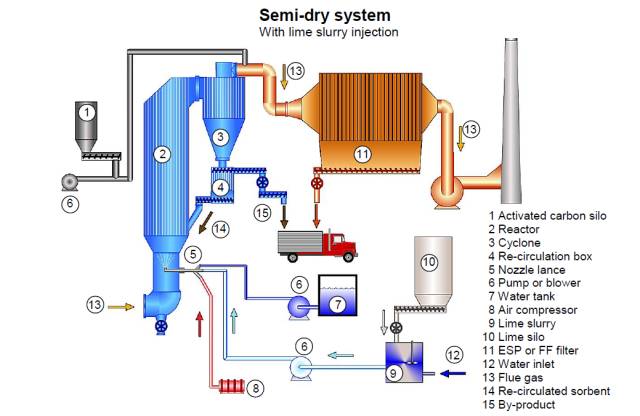 系統(tǒng)配置和國(guó)內(nèi)的工藝路線一樣,但臺(tái)灣2000年就有這樣的高配置,還是比國(guó)內(nèi)超前不少。爐排焚燒爐+SNCR+SDA+消石灰粉噴射+活性炭吸附+布袋除塵器+飛灰穩(wěn)定化處理,爐排采用日本田雄順推爐排,SNCR還原劑采用尿素顆粒制作溶液,SDA的霧化器采用NIRO產(chǎn)品(據(jù)說(shuō)臺(tái)灣只有NIRO和KS兩種品牌),干粉和活性炭給料采用日本進(jìn)口盤式給料機(jī)(都不計(jì)量),活性炭采用煤質(zhì)活性炭,比表面積900m2/g,布袋除塵器的過(guò)濾單元采用韓國(guó)奇藝產(chǎn)品(臺(tái)灣的垃圾燒電廠的多數(shù)使用奇藝和戈?duì)柶放疲?。穩(wěn)定化工藝用水泥+螯合劑(硫基),石灰漿采用消石灰,純度為90%,濃度為12%(沒(méi)有達(dá)到NIRO要求的>20%)。