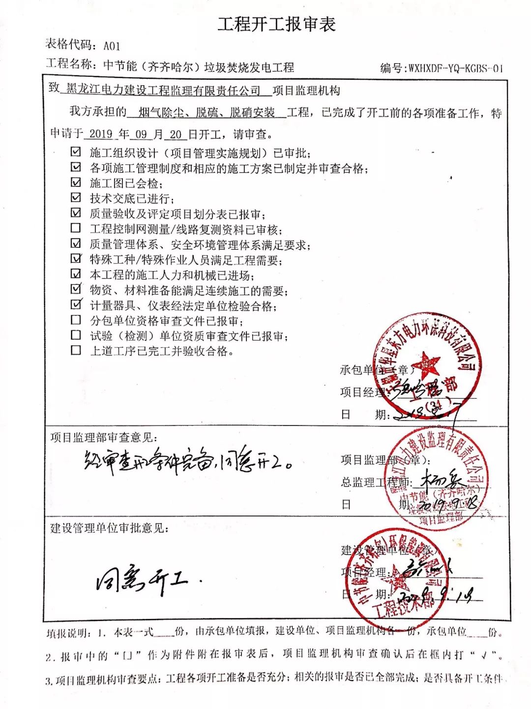 我公司承建的廣東省云浮市新興生活垃圾焚燒發(fā)電項(xiàng)目煙氣凈化工程于2025年03月20日開工建設(shè)。