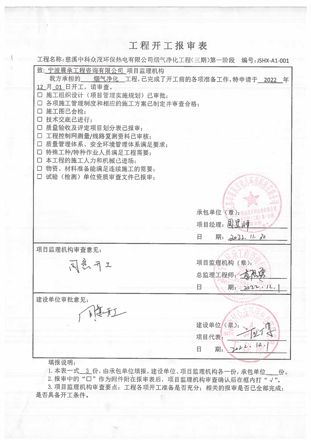 我公司承建的浙江省寧波市慈溪生活垃圾焚燒發(fā)電項(xiàng)目三期煙氣凈化工程于2022年11月30日開(kāi)工建設(shè)。