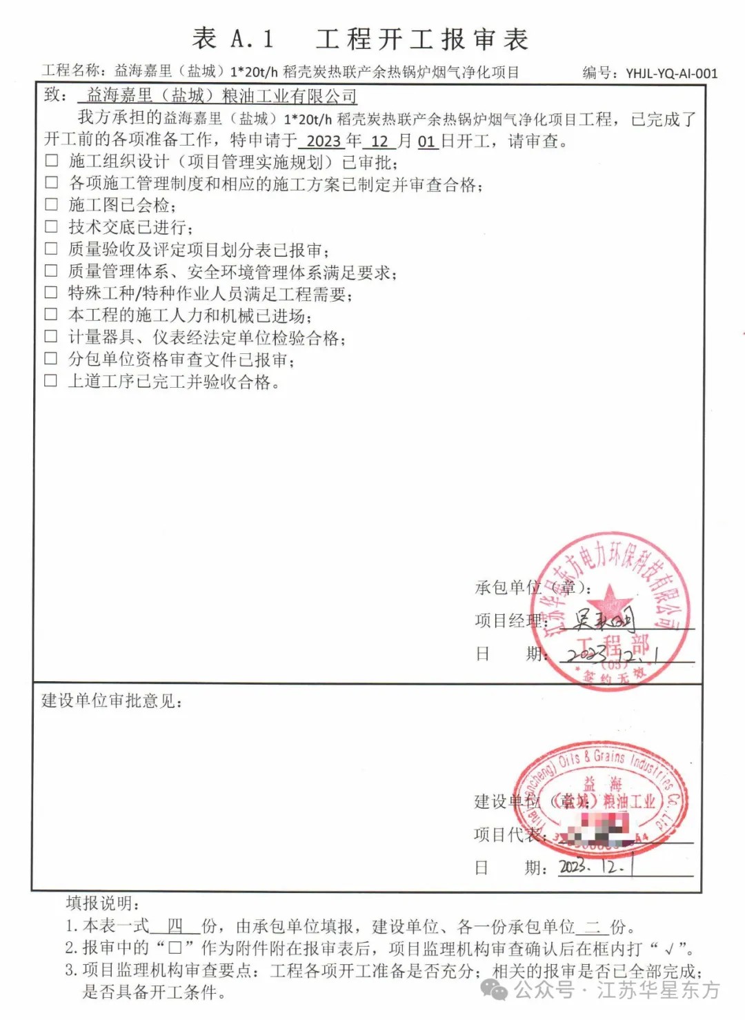 我公司承建的江蘇省鹽城益海嘉里稻殼碳熱聯(lián)產(chǎn)余熱鍋爐煙氣凈化項目于2023年12月01日開工建設(shè)。