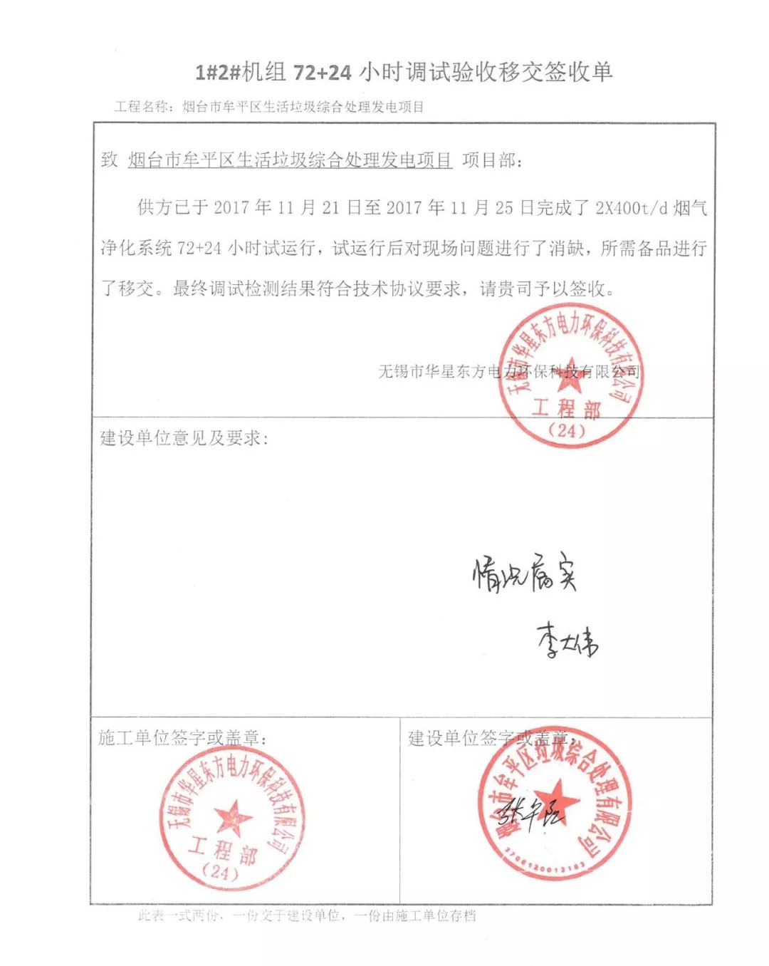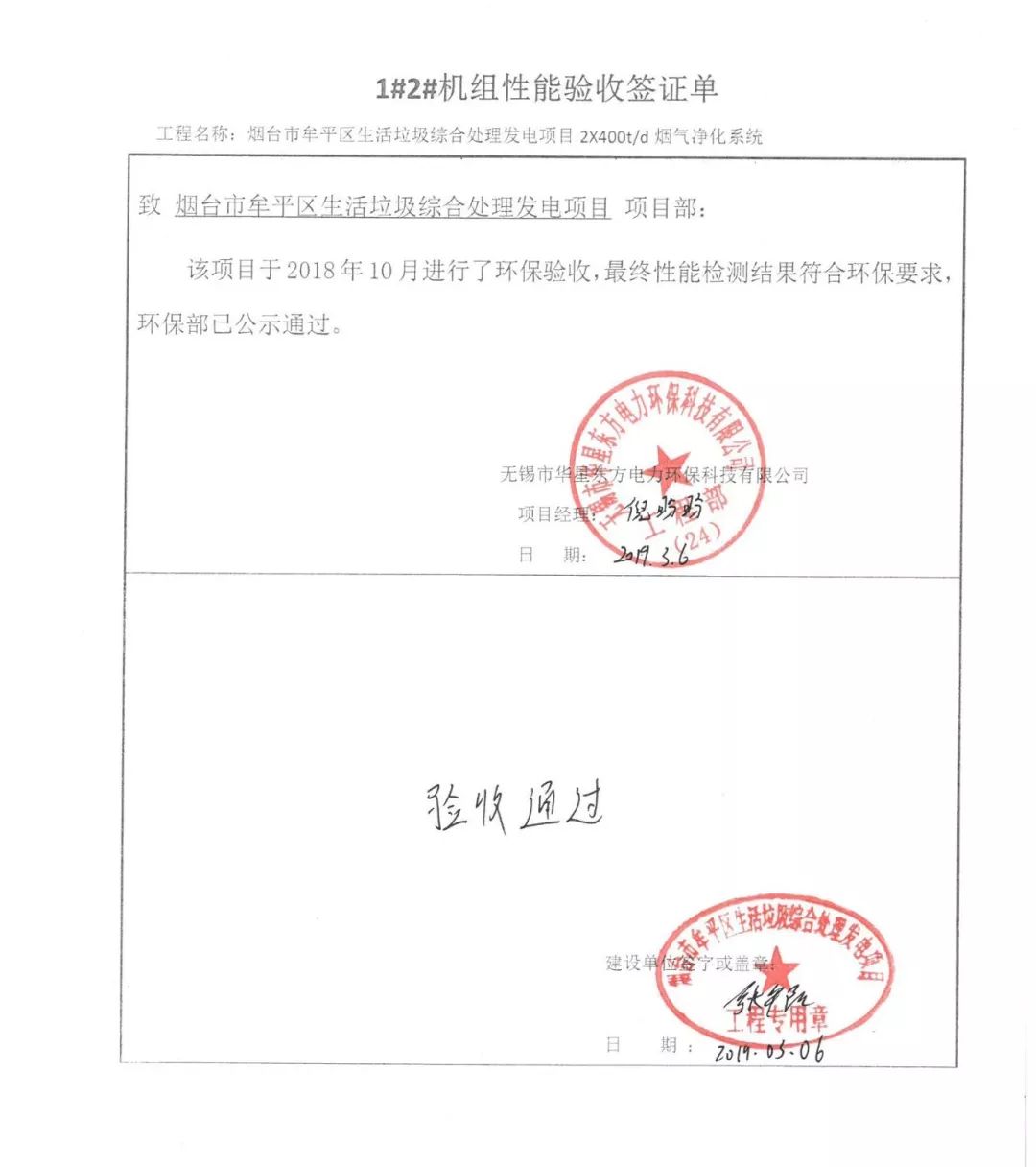 我公司承建的煙臺市牟平區(qū)生活垃圾綜合處理發(fā)電項目煙氣凈化工程于2018年10月通過環(huán)保驗收,現(xiàn)該項目運行穩(wěn)定,各項參數(shù)符合設(shè)計要求。