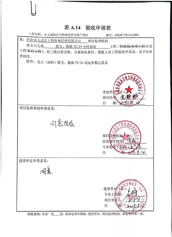 我公司承建的光大渦陽縣生物質(zhì)熱電聯(lián)產(chǎn)項目于2019年8月15日通過72+24小時試運行。