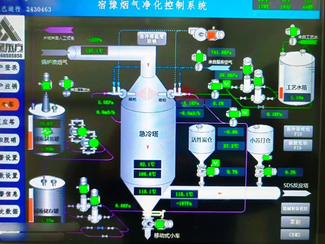 該項目煙氣處理采用“換熱器匯總煙氣+急冷脫酸塔+SDS小蘇打脫硫+陶瓷過濾除塵器+SCR脫硝+脫硫脫硝引風機(甲方供貨我司安裝)”的煙氣凈化工藝,為我司EPC工程。此次項目的煙氣凈化系統(tǒng)使用了由江蘇華星東方自主研發(fā)的陶瓷濾筒、低溫催化二噁英分解和小蘇打干法應用等全新工藝。 The plant FGC applied the process of "heat exchanger gas-collection + quench reaction tower + SDS sodium bicarbonate desulfurization + ceramic filter + SCR denitrification + ID fan". It is an EPC project of Huaxing. The FGC system applied new technologies such as ceramic filter cartridge, low-temperature catalytic decomposition of dioxins, and sodium bicarbonate dry process, which are independently developed by Huaxing.