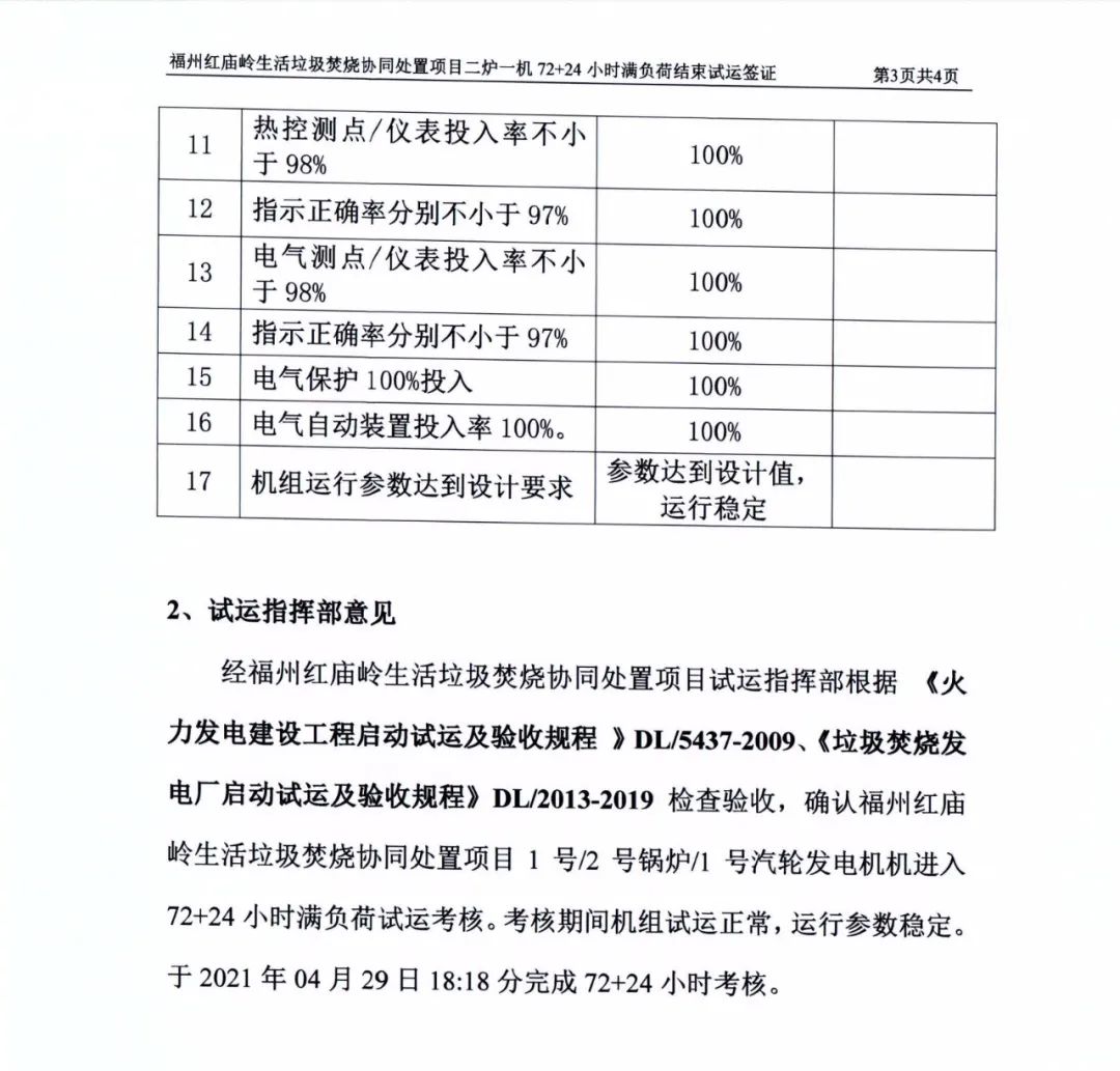 我公司承建的福建省福州市紅廟嶺生活垃圾焚燒發(fā)電項目煙氣凈化工程于2021年04月29日通過72+24小時試運行。 The flue gas cleaning (FGC) project undertaken by Huaxing-east for Hongmiaoling waste incineration power plant in Fuzhou, Fujian passed 72+24 hours trial operation on April 29, 2021.